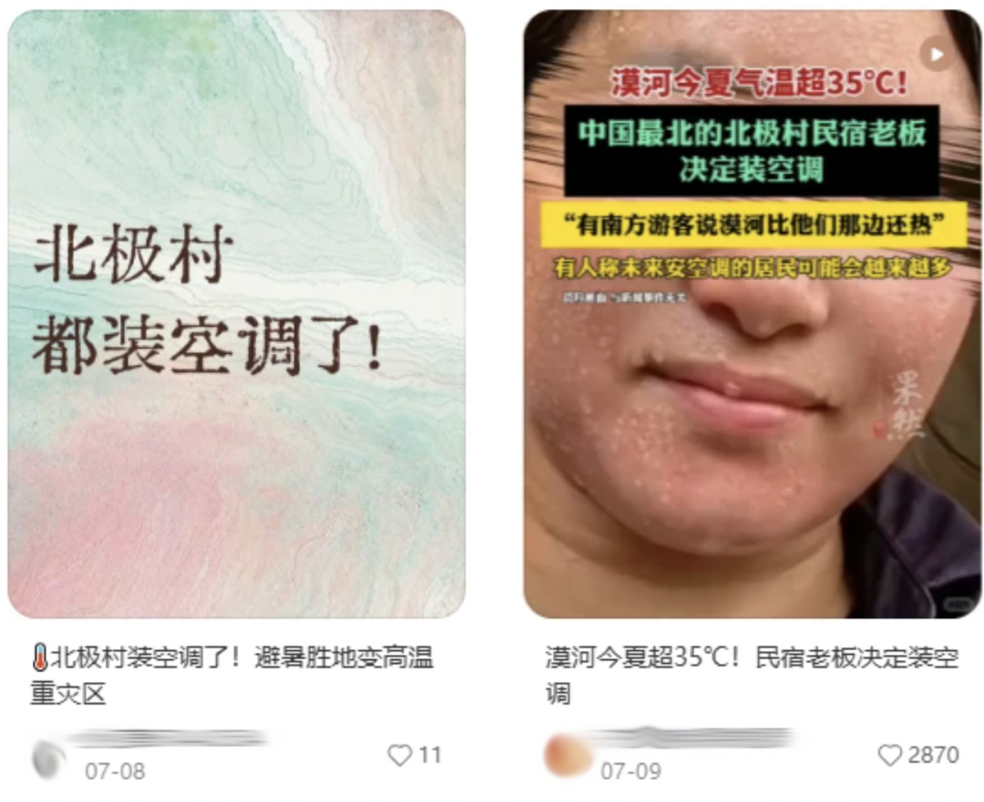 全国十大高温榜单里,东南西北全都有份,就连东北的温度都开始超赶赤道。号称最北的漠河北极村前段时间温度飙升至35℃以上,逼得北极村做出了违背祖宗的决定——装空调。