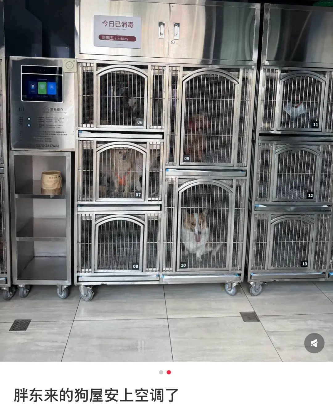更高级的享受是抱着空调吹,最近就网友发现胖东来连自助宠物寄存处都装着空调,当你每天在通勤地铁上感受路人胳肢窝温度时,在胖东来暂居的小狗不仅有一居室,还有不间断的冷风,那一刻真的是狗生我羡慕。